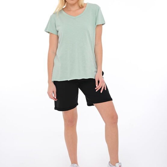 Γυναικεία μπλούζα φλάμα V, η οποία αποτελείται από 100% βαμβάκι.