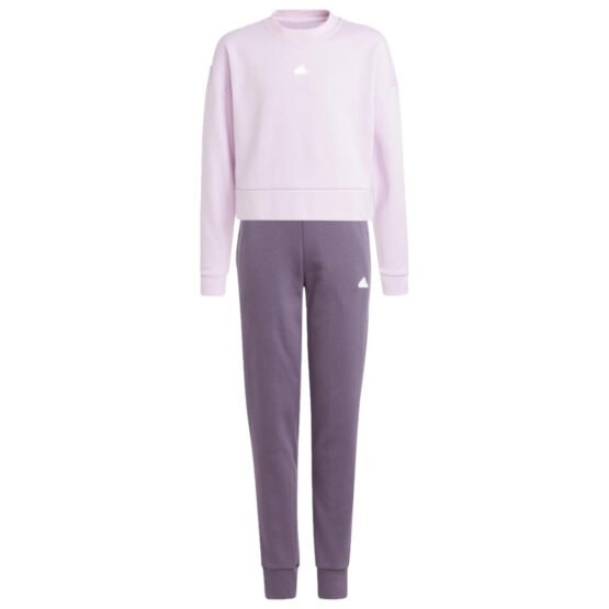 Ξεκίνα τη μέρσ σου με στυλ με αυτό το παιδικό Adidas tracksuit. Η μπλούζα και το παντελόνι είκαι κατασκευασμένα από μαλακό βαμβακερό ύφασμα για άνεση όλη μέρα. Έχει φαρδιά γραμμή για ελευθερία κινήσεων, και ανάγλυφο επίσημο λογότυπο της Adidas στο στήθος για cool look.