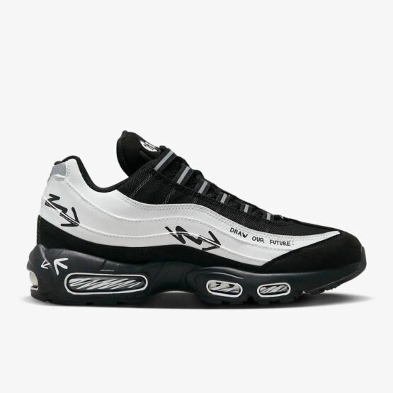 Τα Nike Air Max 95 x Future Movement ήρθαν για να πάνε τον κόσμο ένα βήμα μακριά. Θέλοντας να τιμήσουν την κοινότητα των μαύρων στο Ηνωμένο Βασίλειο, αυτό το μοντέλο αντλεί έμνευση από μια ομάδα καλλιτεχνών που αγωνίζονται να καταπολεμήσουν τα καταπιεστικά συστήματα και να αναδείξουν τη σημασία της κοινότητας και της χαράς. Τα παπούτσια έχουν πολλές λεπτομέρειες, αλλά η χρονολογία 1987 στη γλώσσα παραπέμπει στην πρώτη χρονιά που γιορταστηκε το Black History Month στην Αγγλία. Τα εμπόδια είναι εκεί για να τα καταρίψεις.