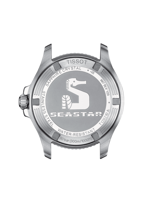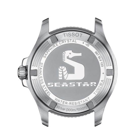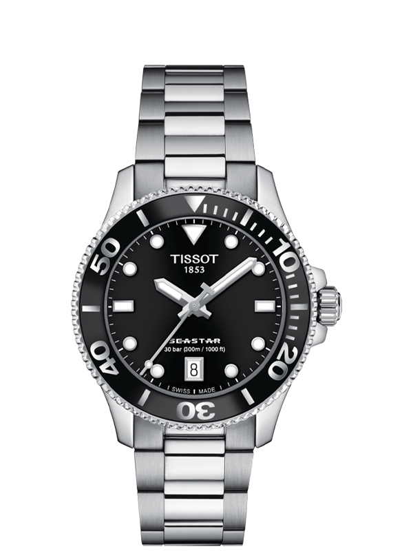 Quartz γυναικείο ρολόι του οίκου: Tissot της σειράς Seastar 1000 36 ΜΜ με μαύρο καντράν και στεγανότητα στα 3000 m/ 30 bar.